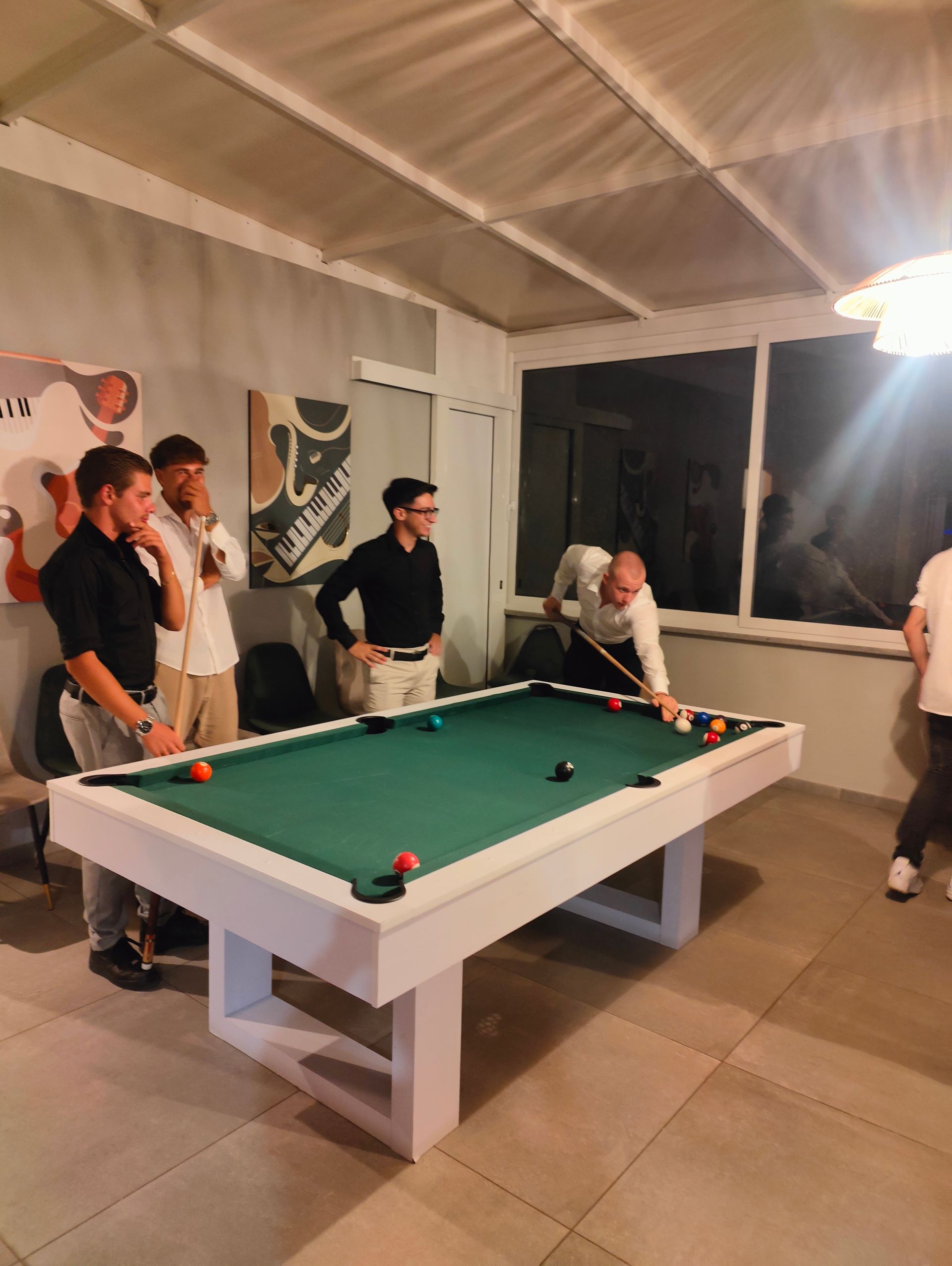 La struttura è un vecchio capannone industriale completamente rimodernato, dispone di un open space con tavoli e panche in legno e ferro, un’ area ludica con Biliardo e calcio balilla, il camino, area barbecue, e una cucina professionale.
